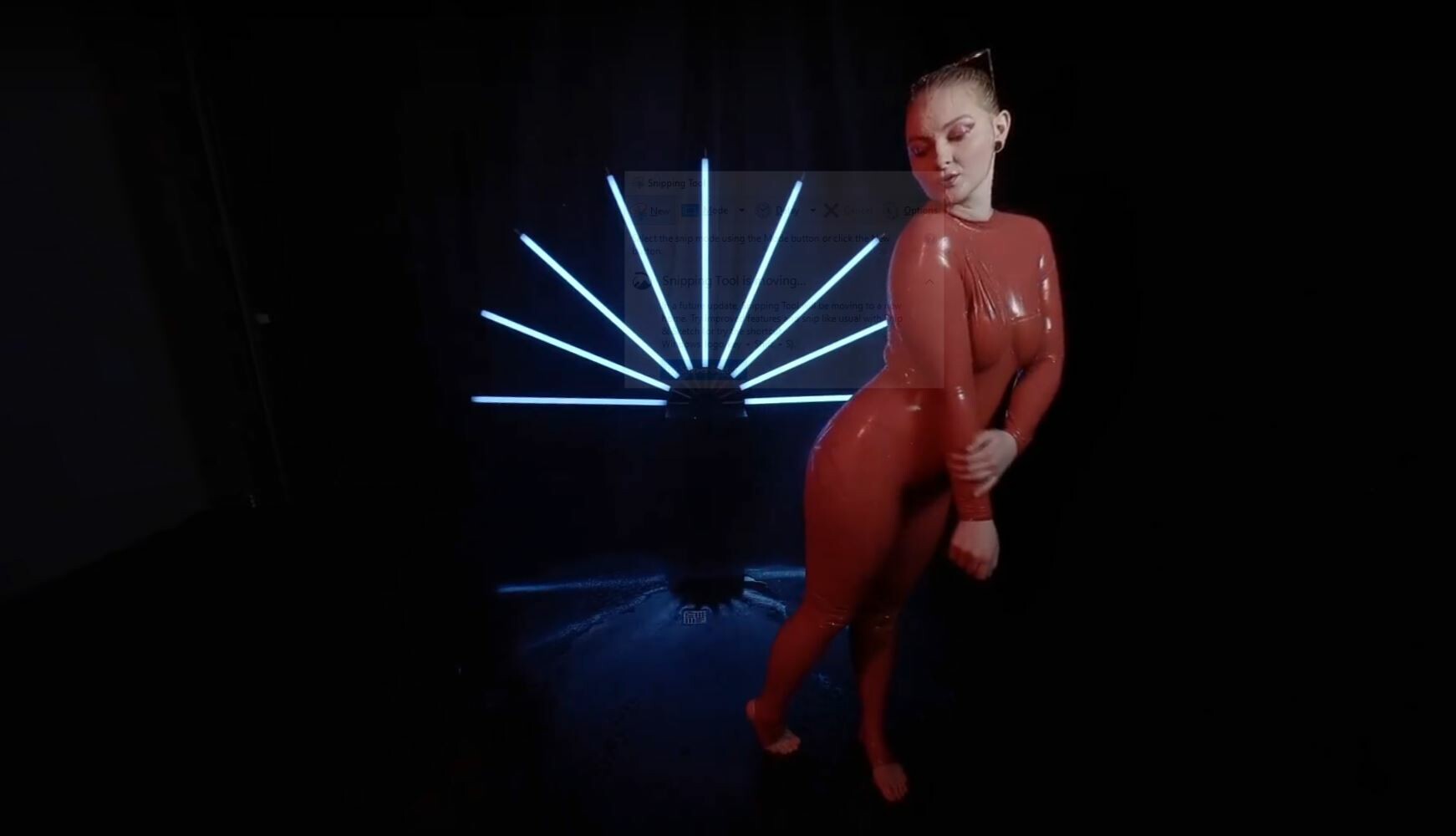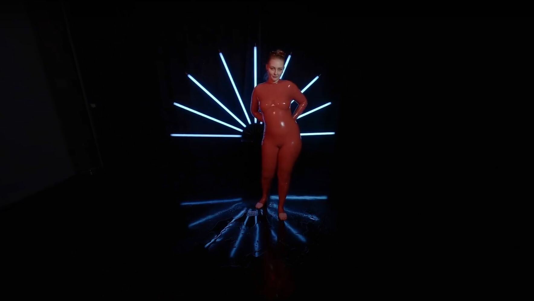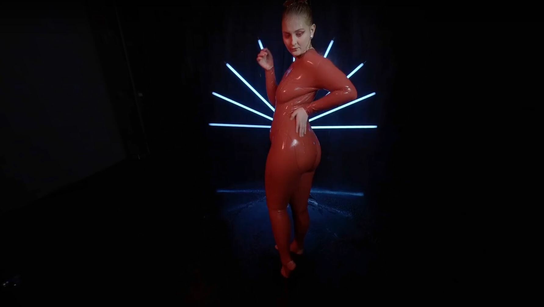 Red Latex Lady Takes A Shower