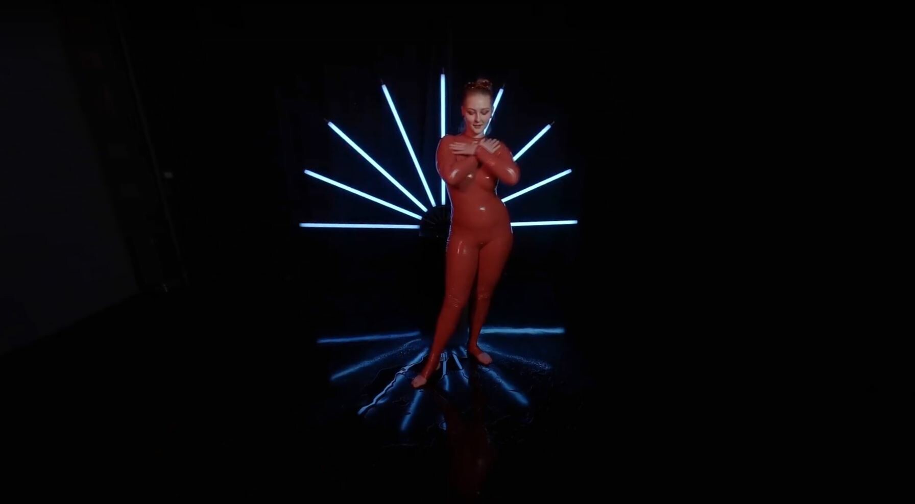 With her red latex dress adding a pop of color to the scene, Amanda's intensity and passion shine through. This is a must-see performance that will leave you breathless.