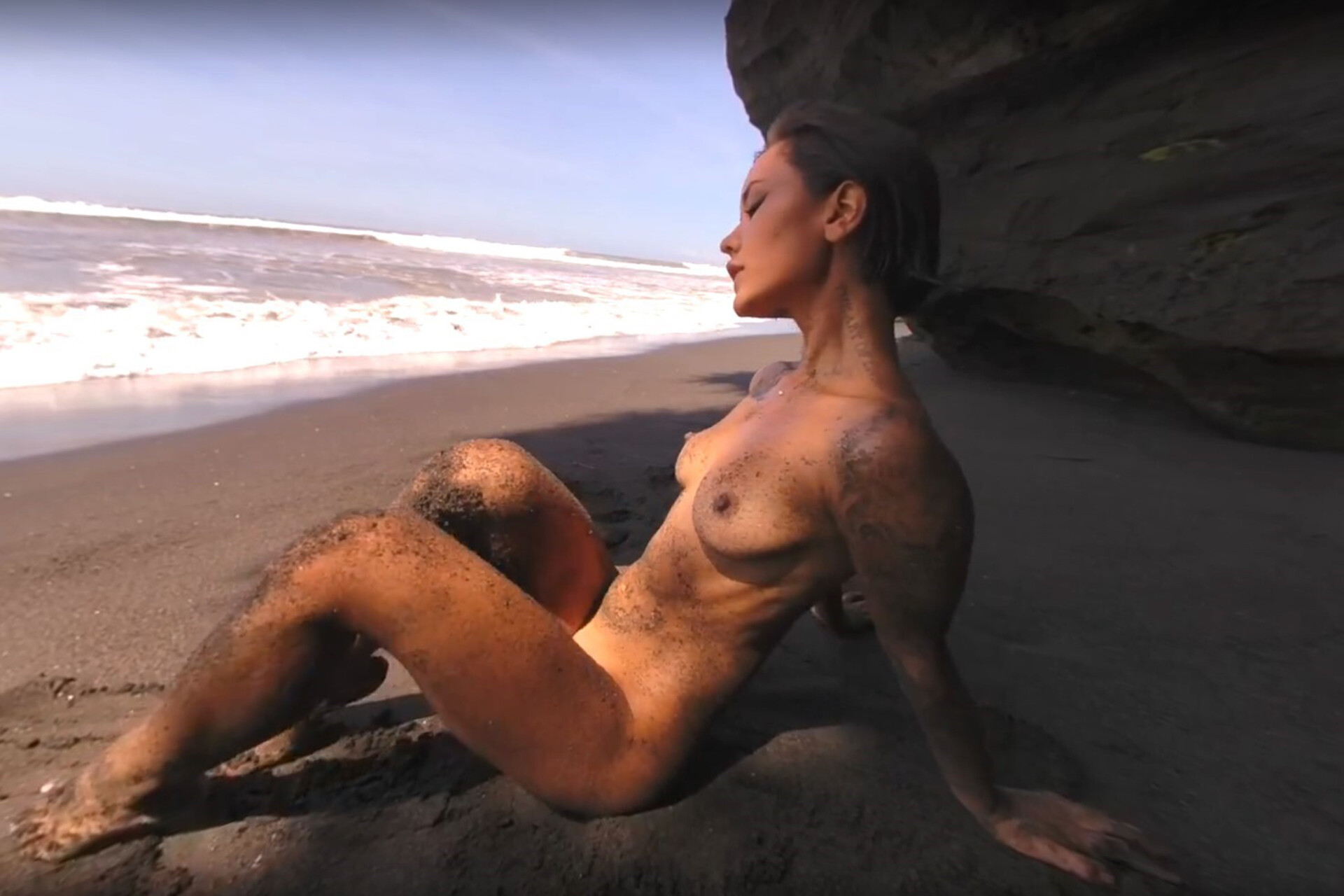 CamillaQ was having a lovely day at the beach, when she happened to find a secluded cove next to the shore. Having such a private area to herself only made her have naughty thoughts. There’s nothing sexier than sand, surf, and juicy wet pussy. The sounds of the sea are soothing as she touches herself and starts getting naked. The ocean isn’t the only thing wet today. Her excitement builds with each new incoming wave. She can’t help but caress her supple curves as they get drenched. The cool breeze plays against her delicate skin, only adding to the chills and excitement she’s already feeling. Overcome with passion, she plays with herself furiously, making sure she explodes like the salty spray of the sea. She should come back here more often…