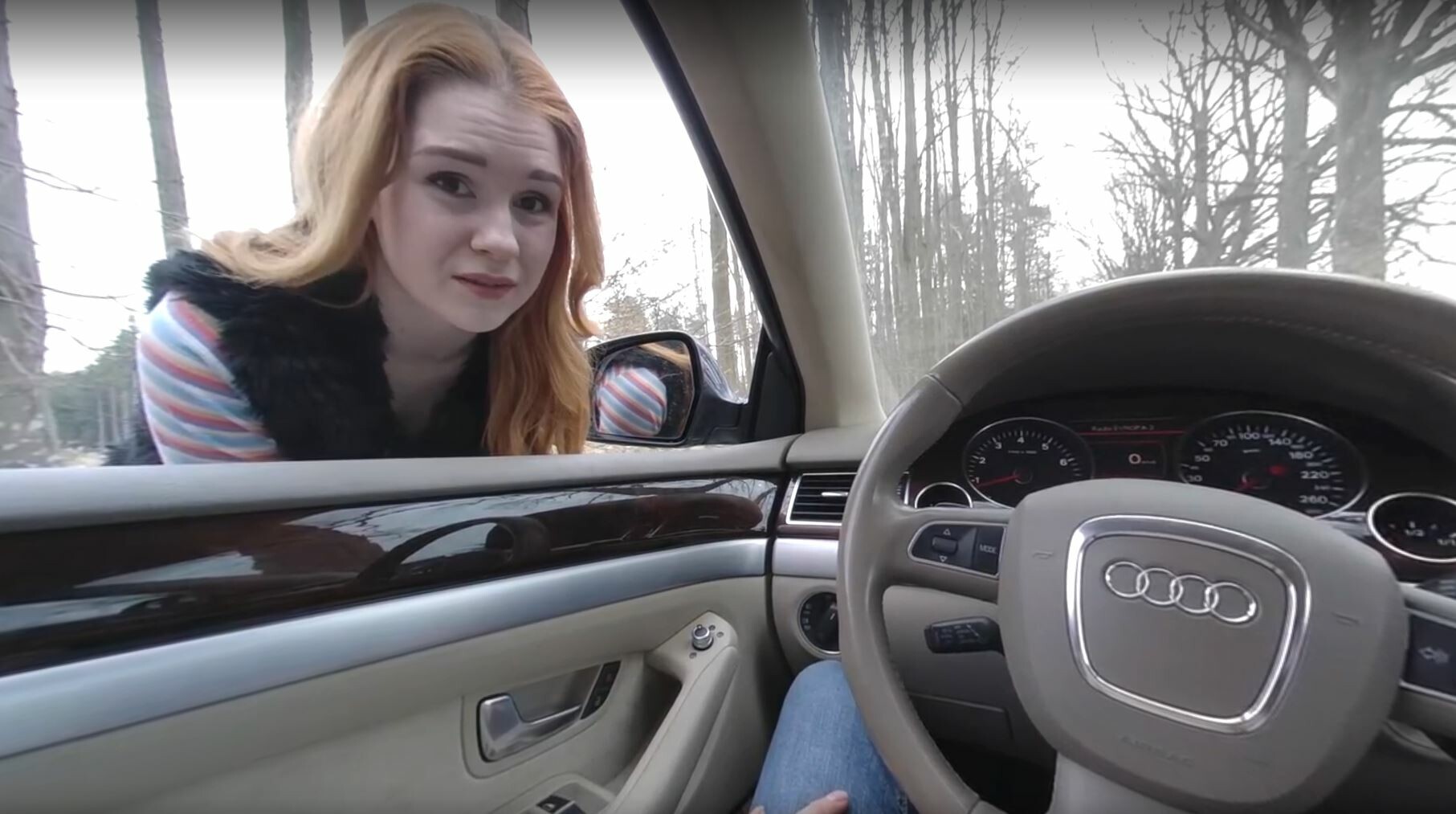 Kaira is lost in the park and you are walking around. You stop and she persuades you to give her a ride. She uses all the sexual pressure until you offer to help her and it all ends with sex until you cum