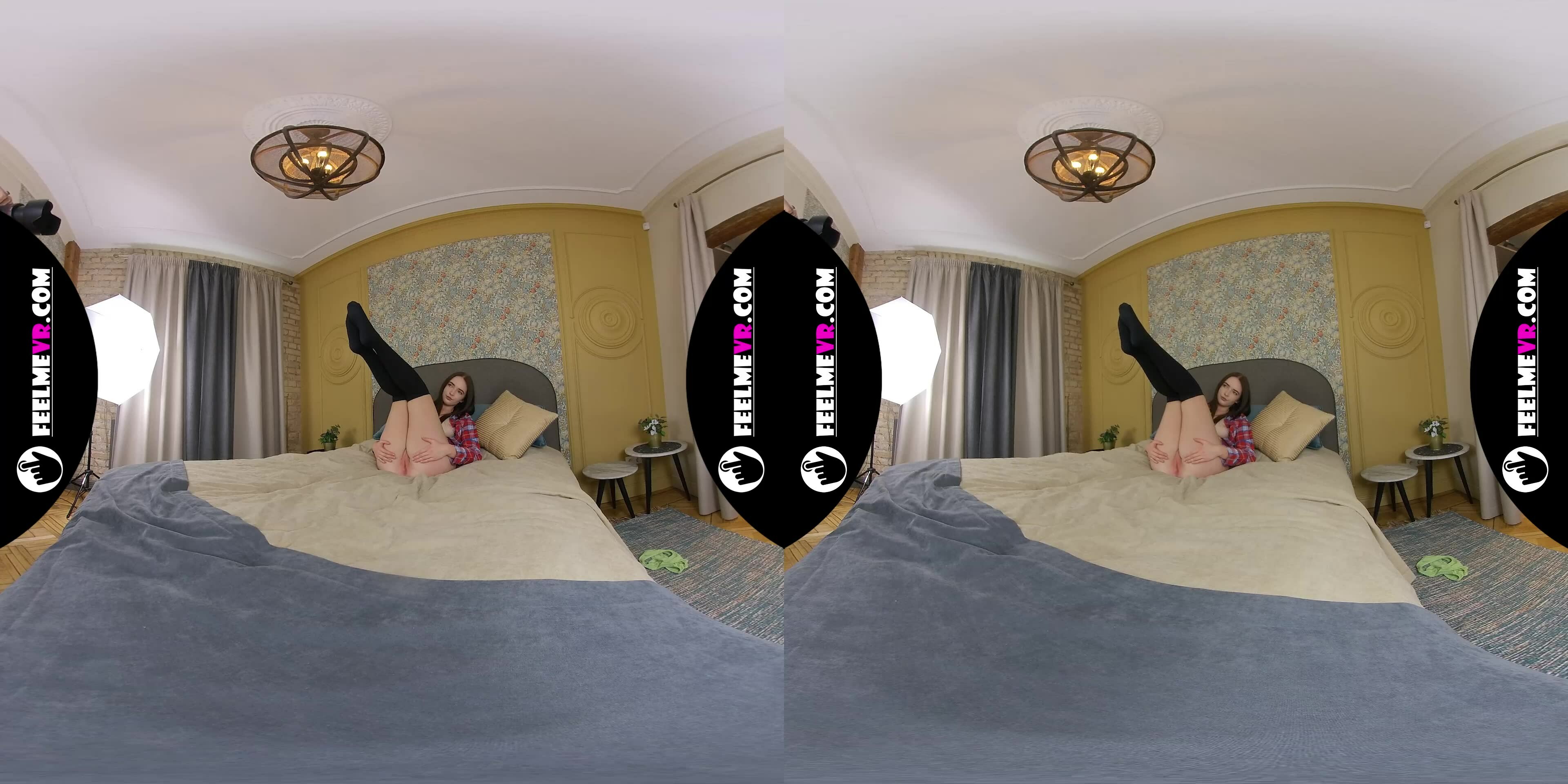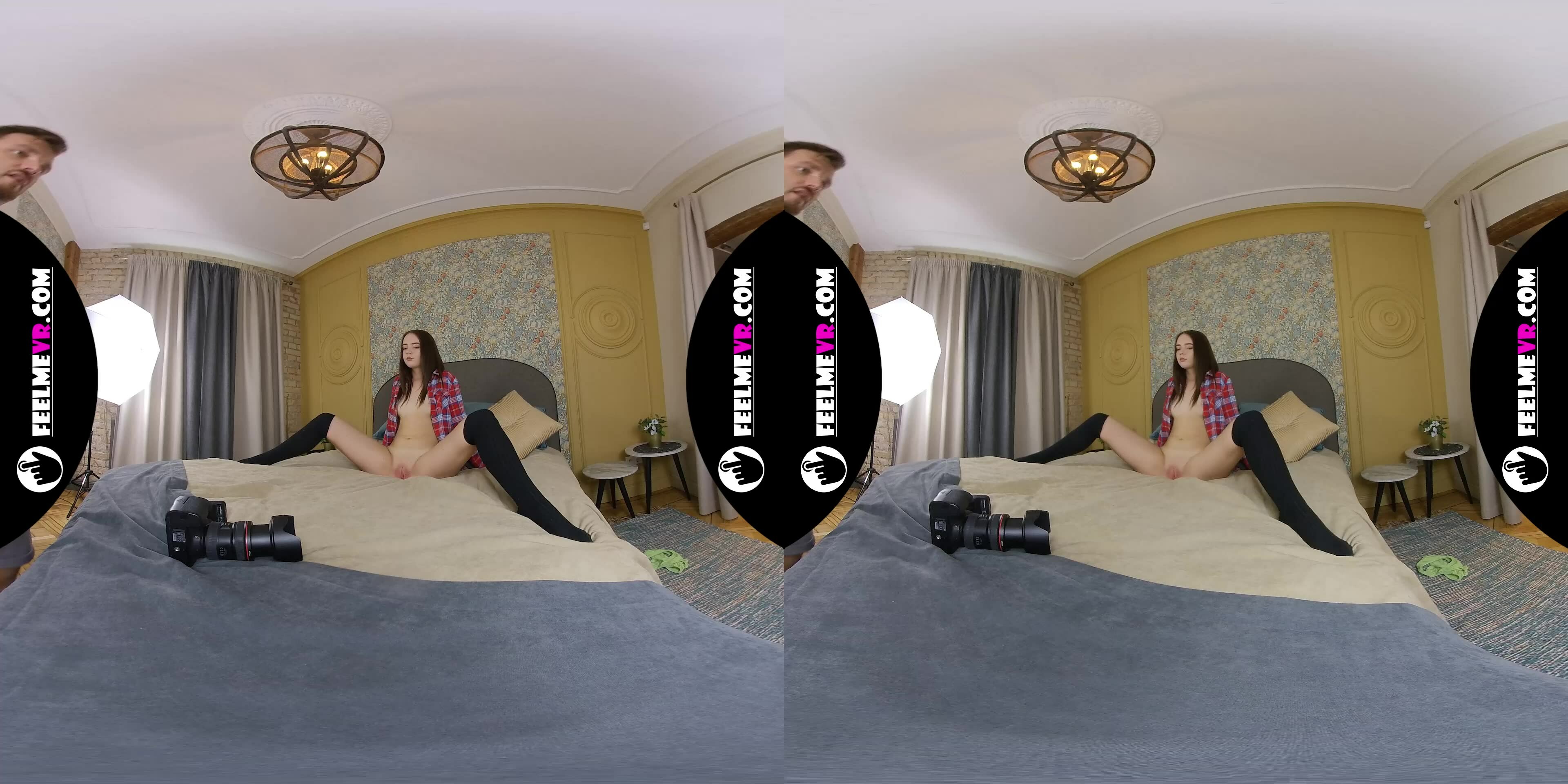 Get ready for the most intimate and immersive experience of your life. In this sultry VR scene, Phoneixa invites you to join her in a private photosession, where she strips down to nothing but her stockings and teases you with her petite, natural tits and shaved pussy.