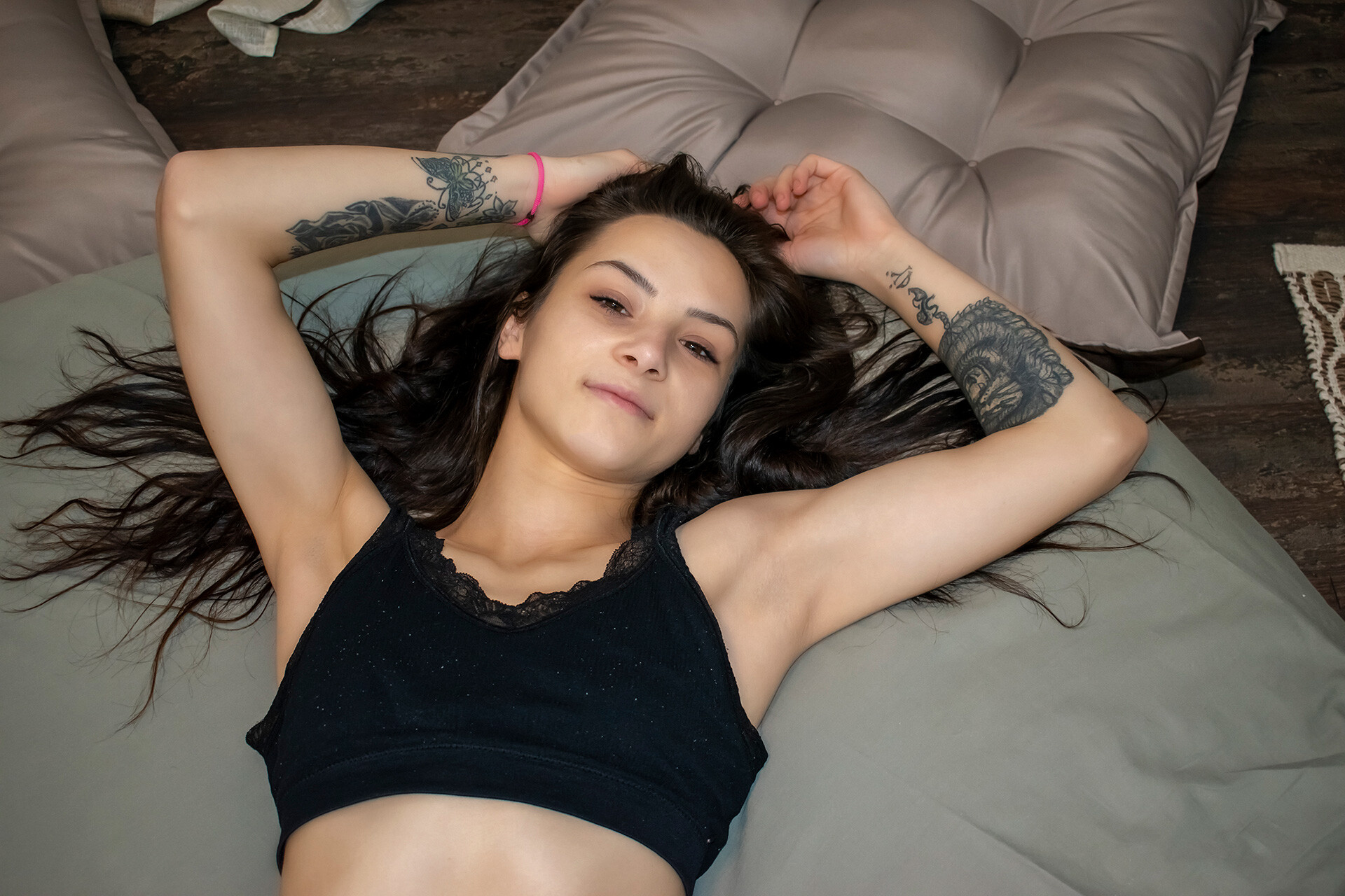 Zoe Foxxy - Amateur brunette teen plays her pussy like a banjo