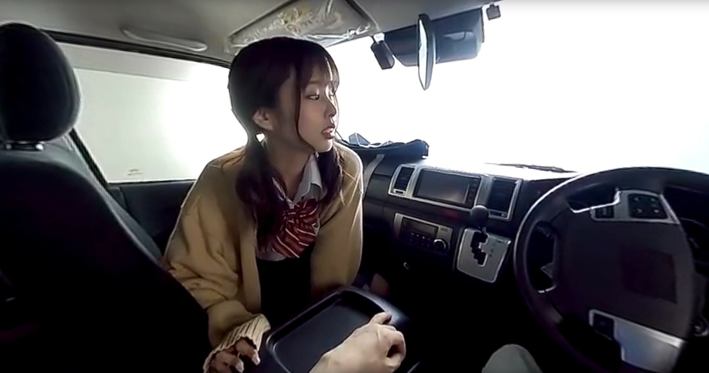 In the parking lot right in front of the house…they have lovemaking sex in the cramped car! The thrill of being seen by passersby gradually turns into pleasure, and she comes! This film is a work of fiction.
