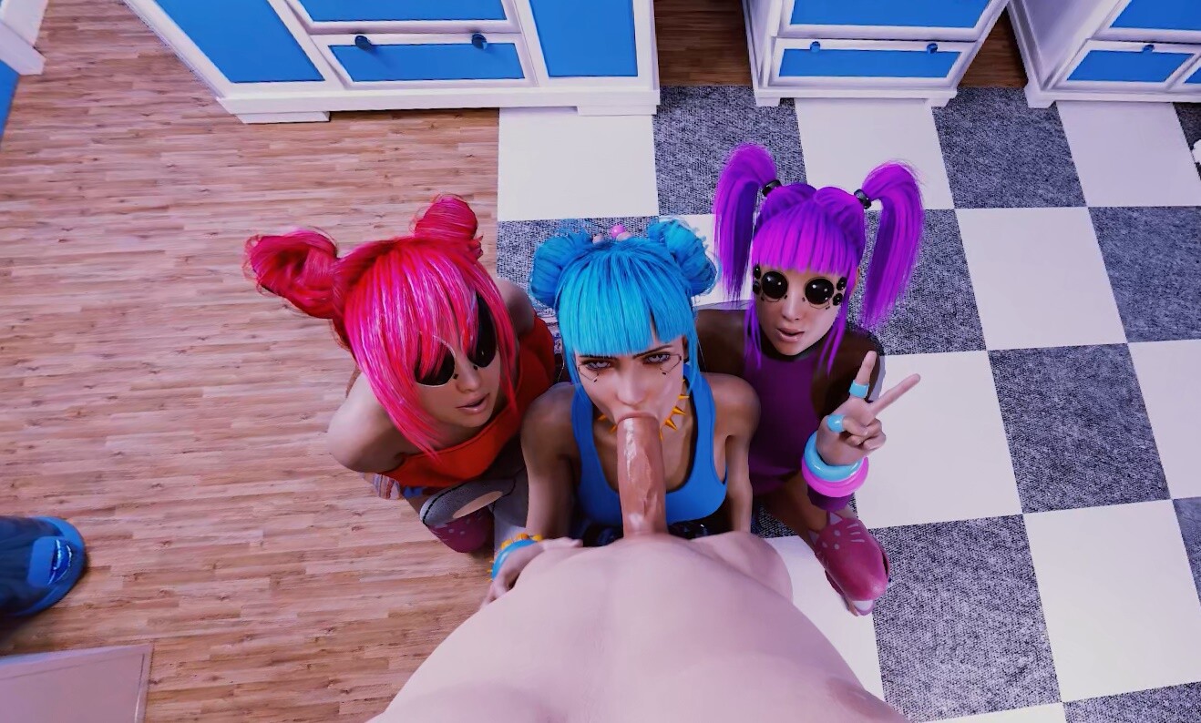 “A visit to your hometown for the holidays, and you run into some major surprises. Growing up together, you didn’t expected Blue Moon (she was Aoi then) to turn into a popstar, ESPECIALLY as part of a lazrpop girl group that competed (successfully!) against AI. To you, she was always the girlfriend that gave great head. Well, wouldn’t you know it, some things never change.”