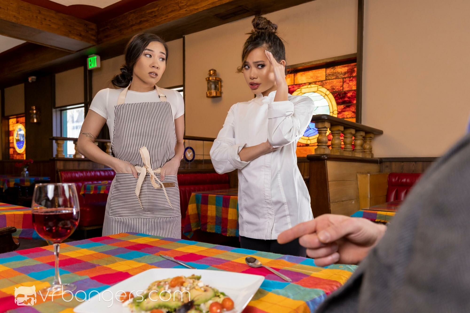 You must have heard about so-called Michelin Stars, have not you? Yeah, they are like… ranks given to the best restaurants in the world to commemorate their high-class and achievements. The point is that, when you are running your own luxury place, getting a Michelin Star to it is pretty much one of the most important things that you are aiming for – and everybody in your crew would do anything to achieve that commemoration, as it is a lifetime achievement that puts you in a very sophisticated spot. Inside of our latest threesome VR porn movie called Today’s Special we are turning you into one of those guides deciding about the Michelin Stars – and, unfortunately for the restaurant that you are visiting today, someone will mess up your order really bad, and now they will have to… pay the price. We have prepared not one but two Asian VR porn stars for you to have some fun with inside of this virtual reality xxx fantasy – Vina Sky and Kimmy Kimm – who will become the waitress and the chef – both responsible for your messed-up order. Sooner or later, when the girl will realize that you are who you are, they will really try to make up and somehow recover from the mess that has just happened – starting with a nice head on behalf of this blowjob VR porn scene. Then, this latest release from VRBangers.com will get even more interesting, as soon enough you will actually get to fuck the vixens – and yes, both of them will be for you to enjoy here and now. Wear your VR goggles to see if they really deserve that Michelin Star – and no, not because of their cooking skills, that is for sure, but… who cares? You got to fuck them, instead – and that is all that matters!