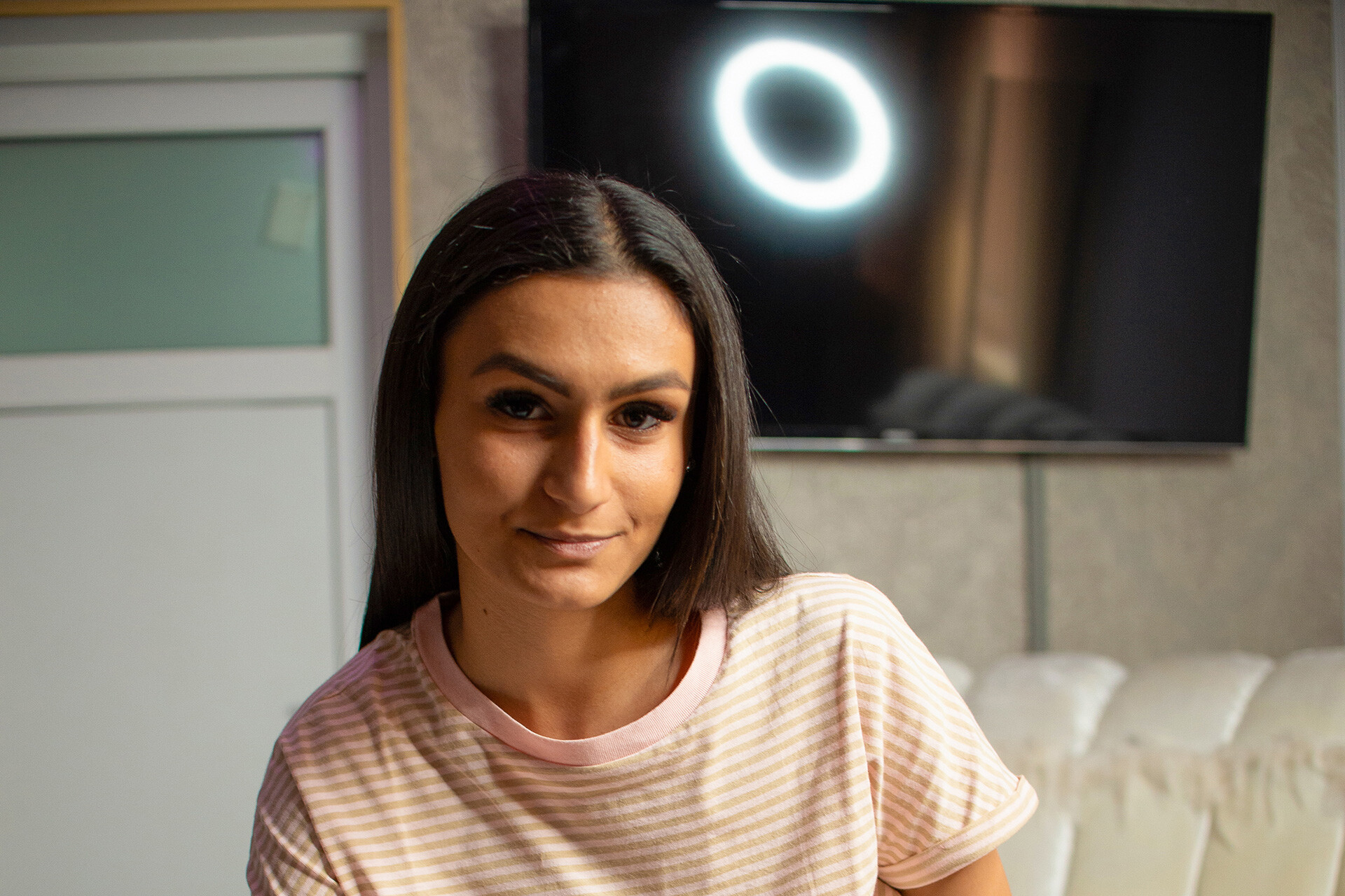 You have to pay your debt to your stepsis Leya, and she is not joking. She wants something unforgettable. She wants a moment with you, so she starts undressing, teasing you, and touching your cock....