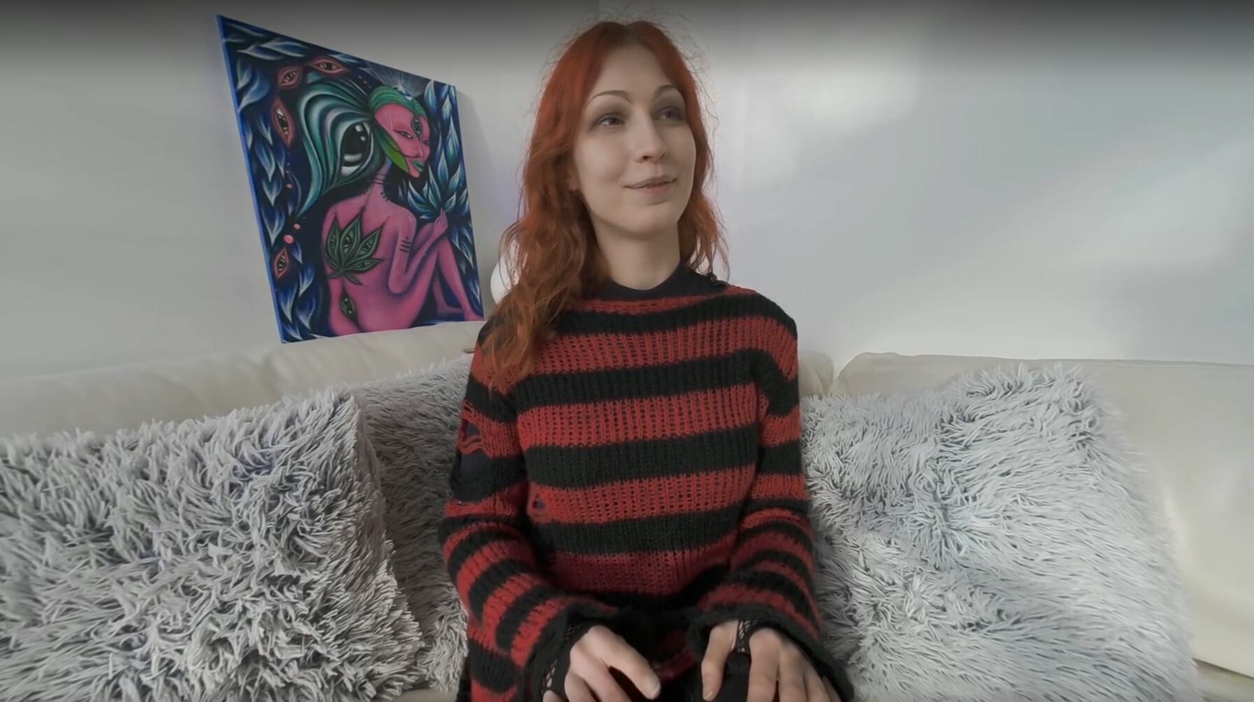 Ellah captivates in a steamy solo session on a white casting couch. Experience her intimate finger play in stunning 8K VR. Feel the raw passion and intense desire!