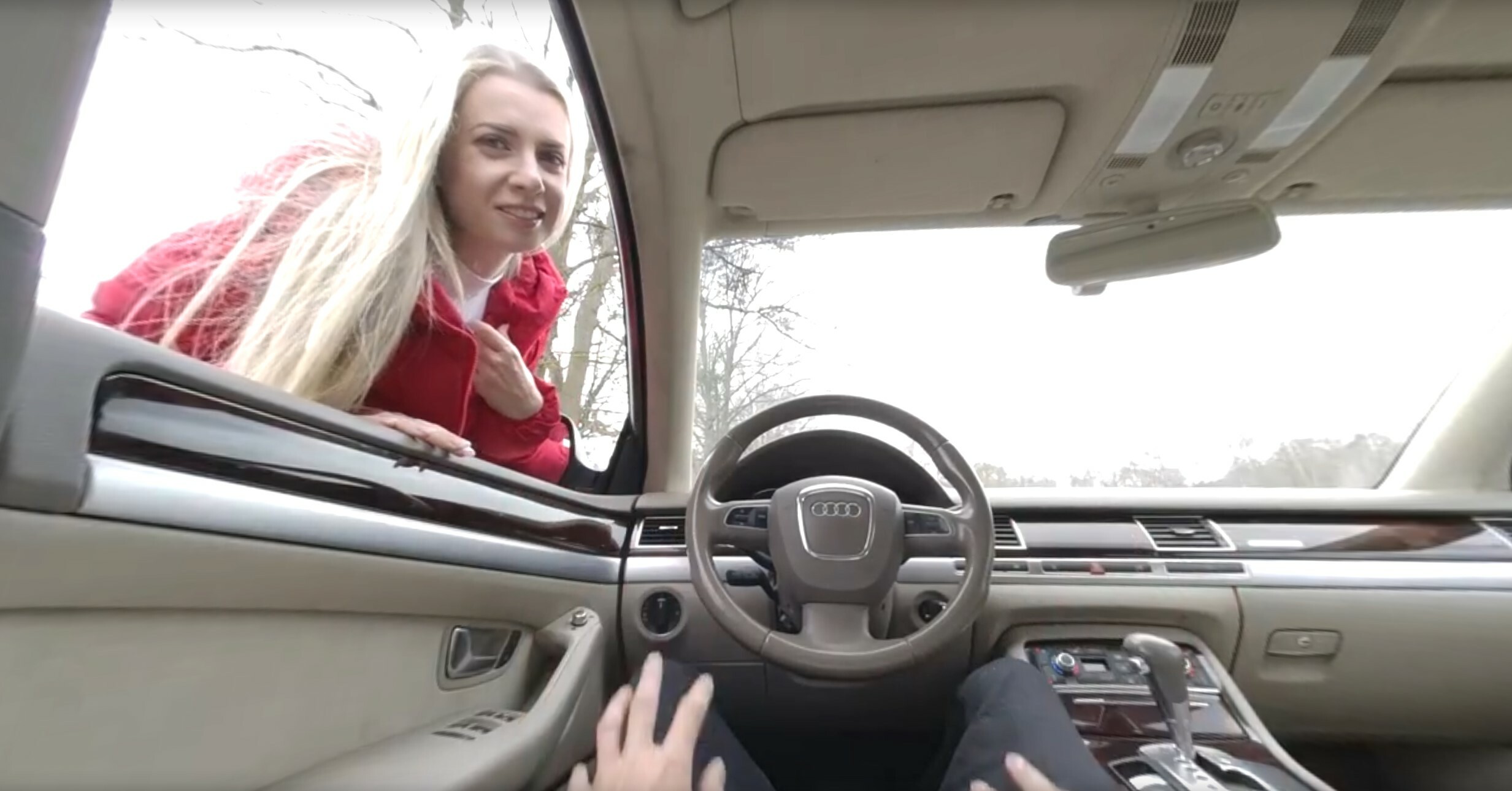Nicole is a very cheerful girl who loves hard sex. You are sitting in the car with her, and she is seducing you and wants to have sex with you. She sits on top of you, and you grab her, and she fucks you...