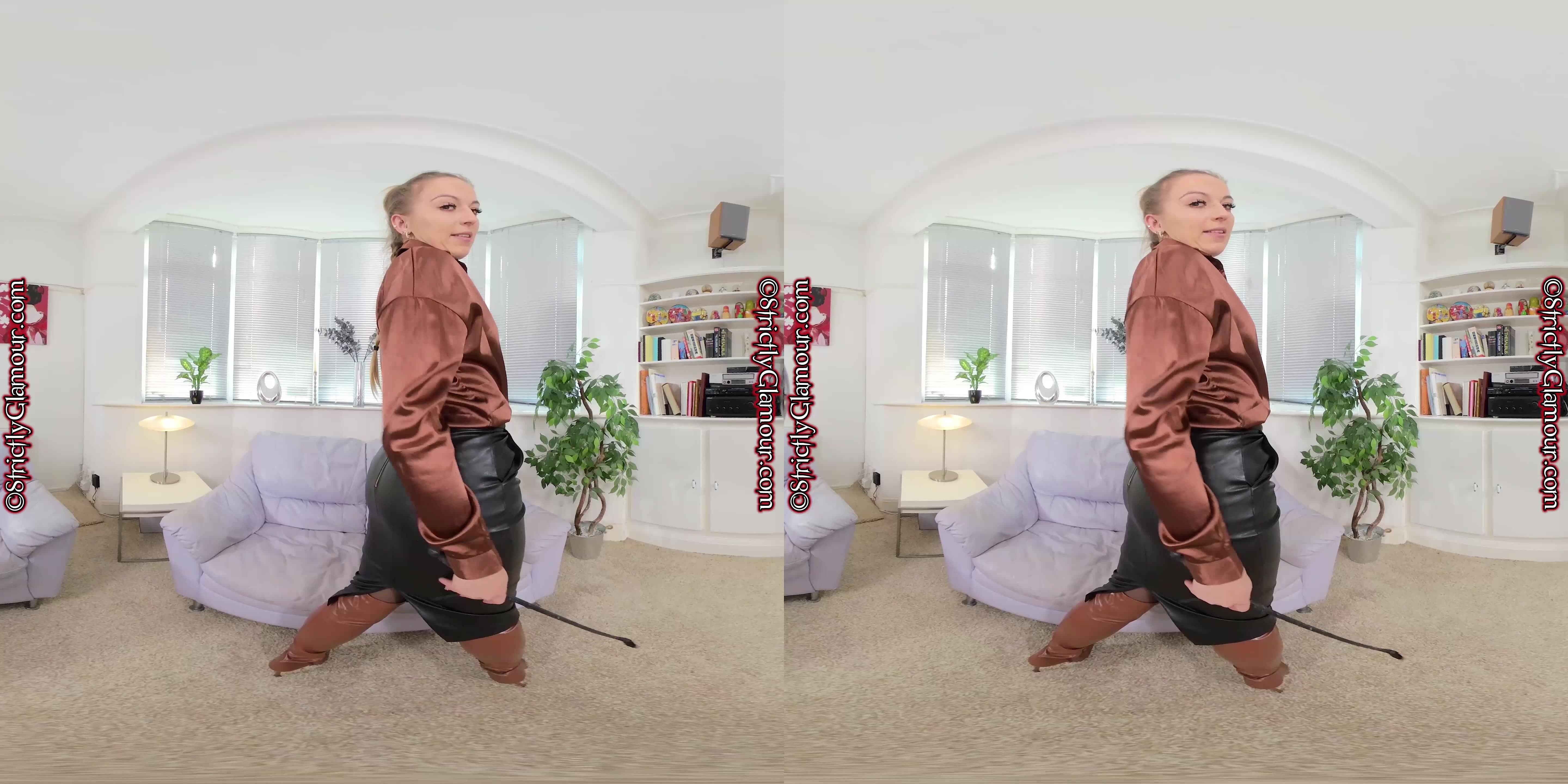 VR Video from shoot with mistress Monika Lara Smith wearing a wet-look mesh bodysuit (sans bra & panties), who has come prepared with riding crop in hand to make sure she has the upper hand throughout...
